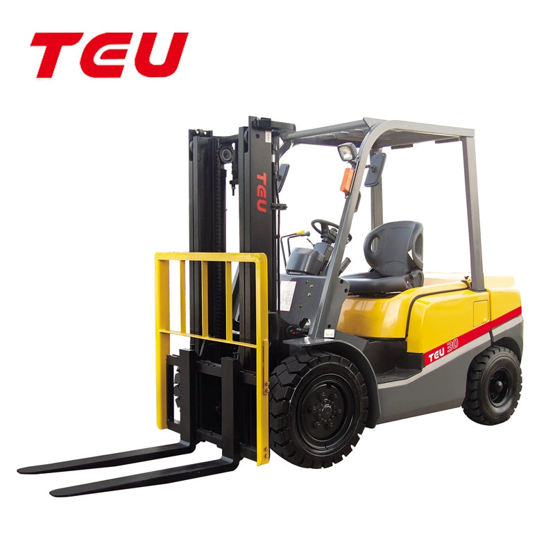 The FD30T is a powerful 3-ton diesel forklift from TEU, designed for efficient heavy lifting in industrial and outdoor environments. With a robust engine, exceptional stability, and ergonomic design, it ensures optimal performance and operator comfort. This model features advanced safety systems and excellent maneuverability, making it ideal for warehouses, construction sites, and logistics operations.